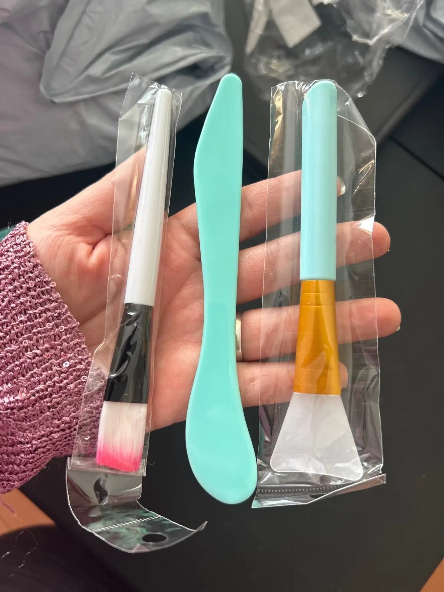 Diese Pflegewerkzeuge sind unglaublich!!! Seit ich sie habe, liebe ich es, wie professionell meine Gesichtsmasken aussehen. Die Pinsel fühlen sich so sanft auf meiner Haut an, und das rosafarbene Set gefällt mir sehr. Probier sie aus, du wirst es nicht bereuen 👍